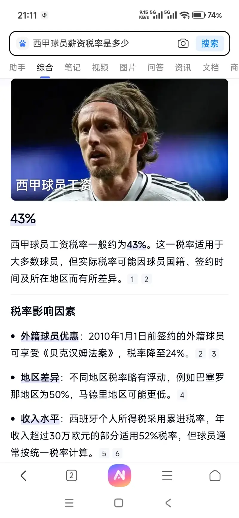 那么,萊萬(wàn)如果明年留隊的話(huà),降薪一半應該為稅前1000w薪資,西甲的工資稅率我個(gè)人不是很了解,按搜索的結果43%-50%,那么他的稅后薪資大概就是550w上下。