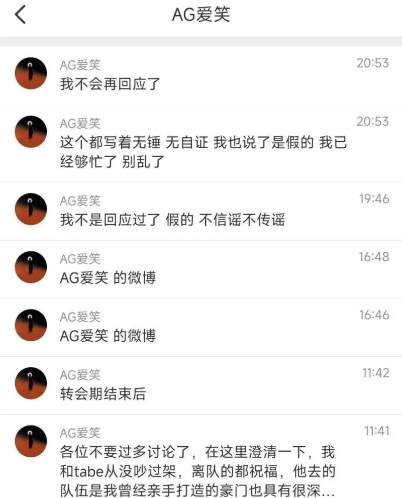 各位不要過(guò)多討論了,傳謠從沒(méi)e吵在這里澄清一下,流言流我從沒(méi)和Tabe吵過(guò)架,板愛(ài)不信離隊的應近謠都祝福。