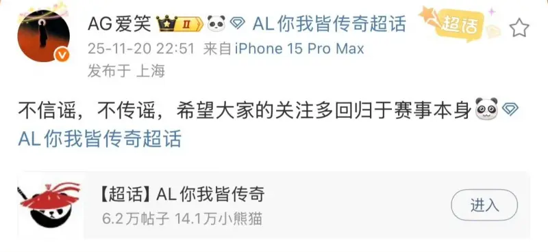[流言板]愛(ài)笑回應近期轉會(huì )期流言:不信謠,流言流不傳謠,板愛(ài)不信從沒(méi)和Tabe吵架由虎撲游戲電競資訊 發(fā)表在英雄聯(lián)盟 https://bbs.hupu.com/lol