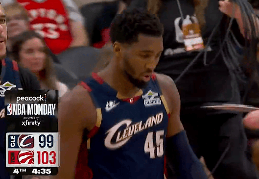 第四節比賽中,分打米切爾連續三分投進(jìn)末節3中3連拿10分,米切末節騎士落后4分打停猛龍。爾連