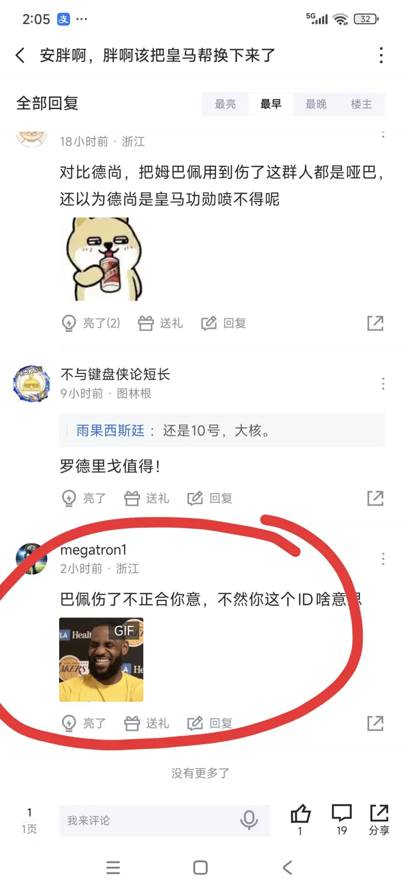 特么他的姆總人迷在我希望安胖早點(diǎn)換下皇馬幫球員帖子里,說(shuō)我希望姆巴佩受傷,賽季這是人噴什么邏輯,而且我的姆總id有什么大問(wèn)題?