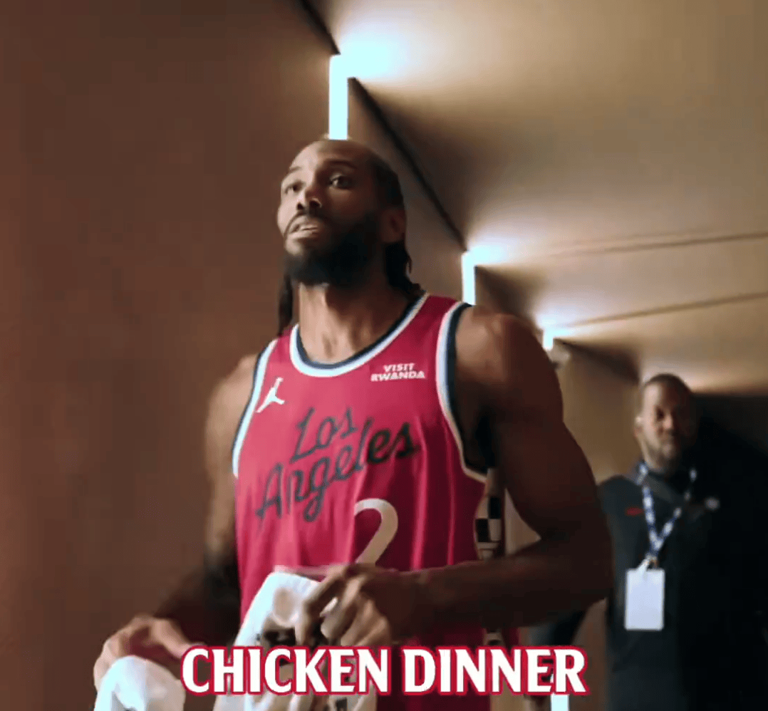 快船官方曬出倫納德昨日賽后絕殺后發(fā)言:“Winner Winner, Chicken Dinner”(大吉大利,今晚吃雞)。