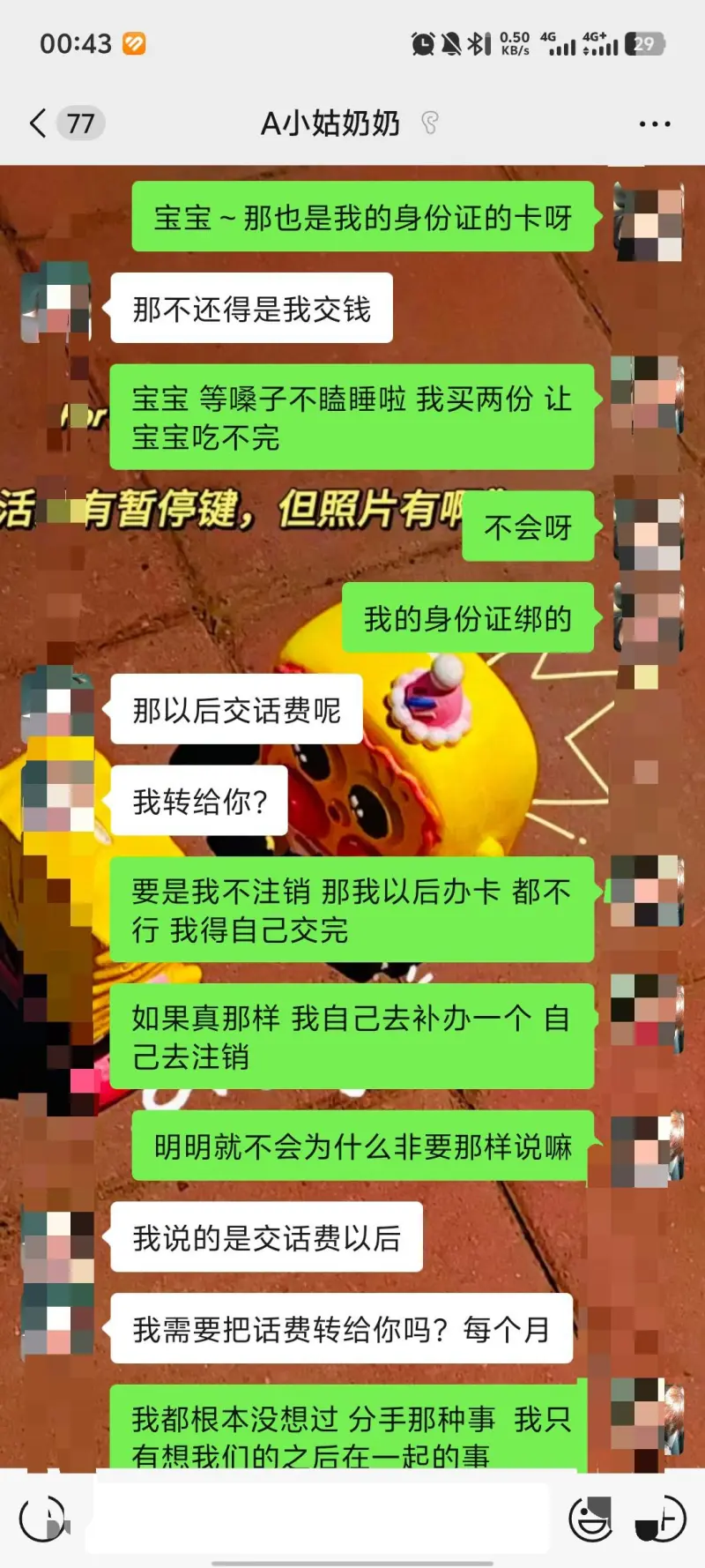 可是今天下午突然問(wèn)我如果我們分手,我給她辦的電話(huà)卡還能用嘛,她還需不需要交費嘛,我一開(kāi)始和她說(shuō)的,咱們也不會(huì )分手,肯定一直在一起呀,我就感覺(jué)有點(diǎn)不舒服,昨天也問(wèn)的這事情,昨天也給她說(shuō)了感覺(jué)好像在為分開(kāi)做打算,然后下午說(shuō)想吃炸雞,她還咳嗽,我就說(shuō)忍忍嘛等病好了我請她吃,她就說(shuō)我畫(huà)餅,鬧了點(diǎn)不愉快,可是明明之前都是生病好了我都會(huì )要給她買(mǎi),但大部分她那時(shí)候也不想吃了,也給我說(shuō)過(guò),就是生病的時(shí)候想吃,不生病反而不想吃了,生病吃嗓子還不舒服,還給我說(shuō)要勸住她,晚上還是去吃了,就和我說(shuō)心情好了,吃了東西心情就好了。