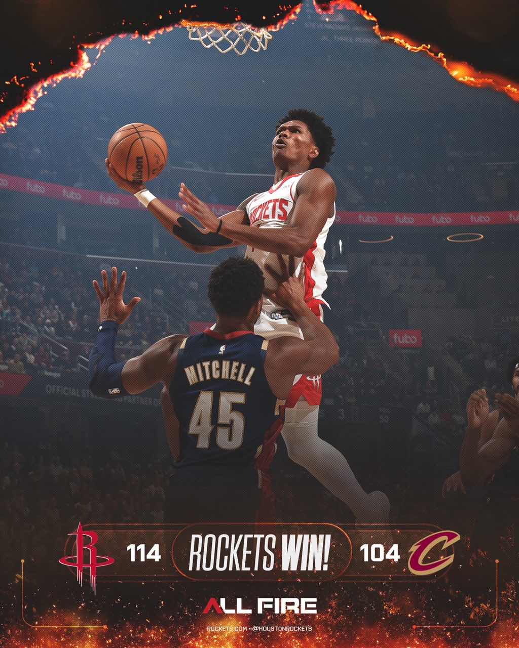 賽后,媒分火箭社媒分享此戰獲勝海報。享今