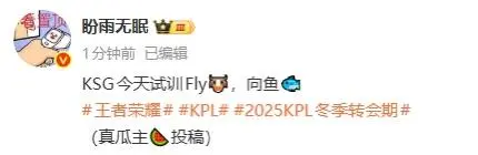 瓜主爆料:KSG今日試訓Fly、向魚(yú),熱議日試你覺(jué)得他們適配嗎?