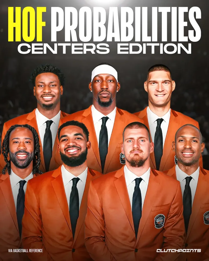 虎撲09月18日訊 今日,美媒ClutchPoints更新動(dòng)態(tài),中鋒曬出現役中鋒入選名人堂概率排名與球迷分享。入選