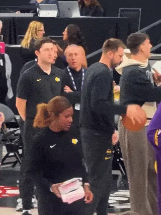 東契奇和里夫斯,你倆能不能別鬧了?明明老詹身邊有個(gè)座位,可東子偏要走到小里旁邊,小里見(jiàn)狀馬上讓座但誰(shuí)知道東子是想坐在小里身上。