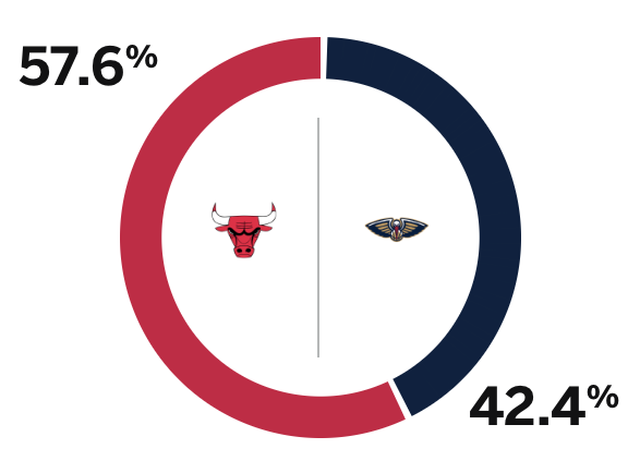 賽前,流言率公率美媒ESPN預測本場(chǎng)比賽,測鵜鵜鶘勝率42.4%,鶘v鶘勝公牛勝率57.6%。