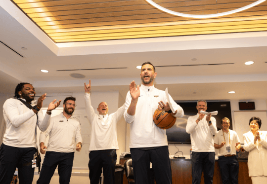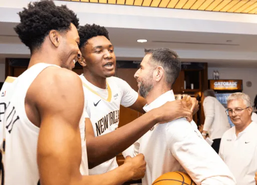 虎撲11月25日訊 鵜鶘官方更新ins,曬球員與教練在休息室照片。新i笑容