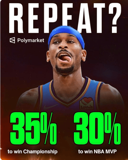 根據NBA內容聚合媒體Hoop Central報道:SGA去年同時(shí)贏(yíng)得了MVP和NBA總冠軍。Polymarket目前預測SGA有35%的概率衛冕冠軍,30%的概率衛冕MVP。他能否再次實(shí)現這一壯舉?