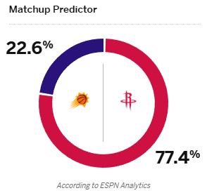 [流言板]ESPN預測明日比賽:火箭勝率77.4%,太陽(yáng)勝率22.6%