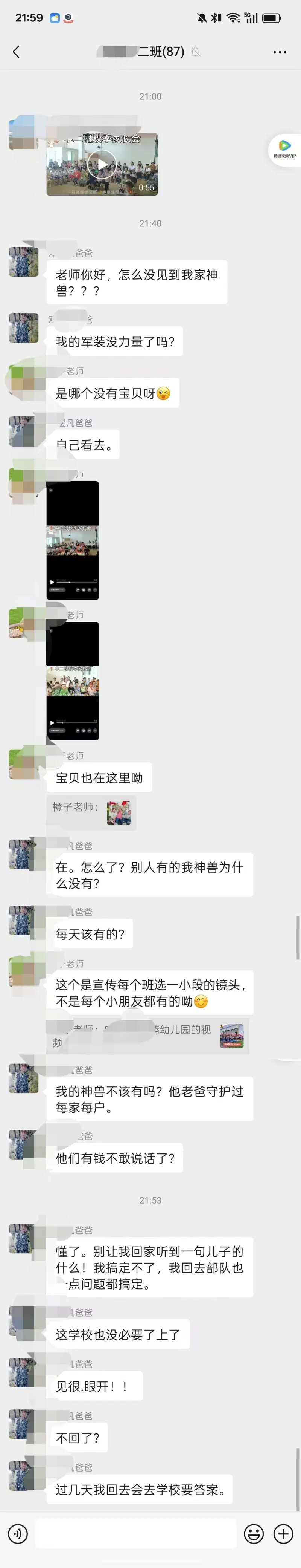 窒息啊~老師這只是幼兒園拍一些精彩瞬間,不一定每個(gè)寶貝都會(huì )有鏡頭的長(cháng)群,你把這理解為認家長(cháng)有錢(qián)就有鏡頭了,那事還拿軍裝施壓??????