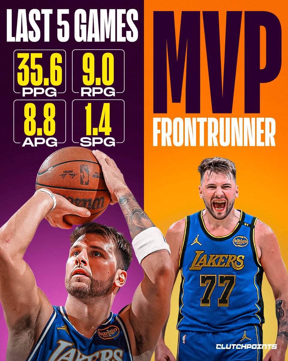 “盧卡-東契奇在過(guò)去5場(chǎng)比賽中展現出無(wú)可爭議的MVP表現。場(chǎng)均35.6分9.0籃板8.8助攻1.4搶斷。他完全掌控了進(jìn)攻端,可以隨心所欲得分,讓身邊所有隊友變得更好。 ”