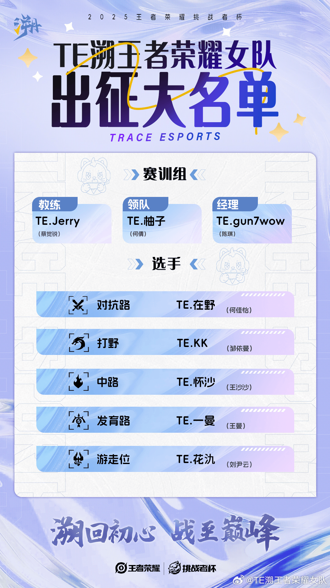 【TE溯王者榮耀女隊2025王者榮耀挑戰者杯 出征大名單】