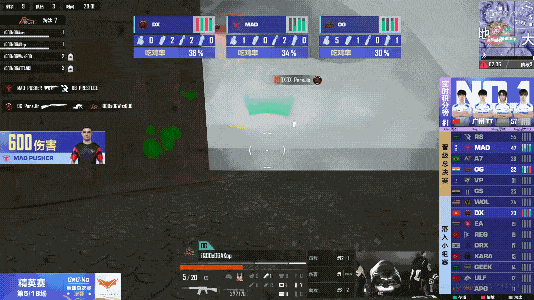 TT先倒兩人,思婷噴倒一人,房區DOK抓住派大興打藥機會(huì )將其淘汰,險勝APG打贏(yíng)房區戰役