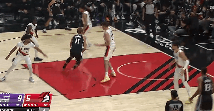 虎撲10月11日訊 NBA季前賽,開(kāi)拓者對陣國王的分中分比賽正在進(jìn)行中。