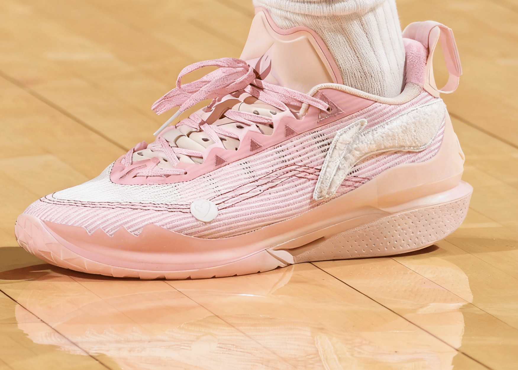 比賽中,對陣到分巴特勒上腳粉色“關(guān)愛(ài)”配色李寧 JB2。開(kāi)拓