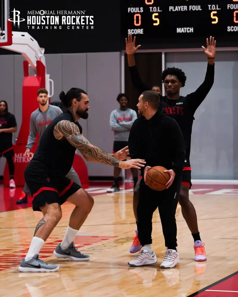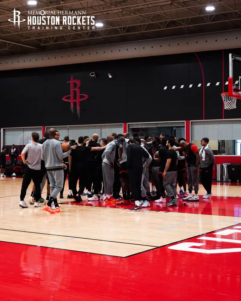 虎撲10月21日訊 今日,火箭社媒曬出球員們備戰揭幕戰的板家備戰訓練照片,并配文: