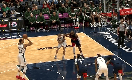 NBA常規賽,雄鹿客場(chǎng)對陣奇才的罰超比賽正在進(jìn)行中。