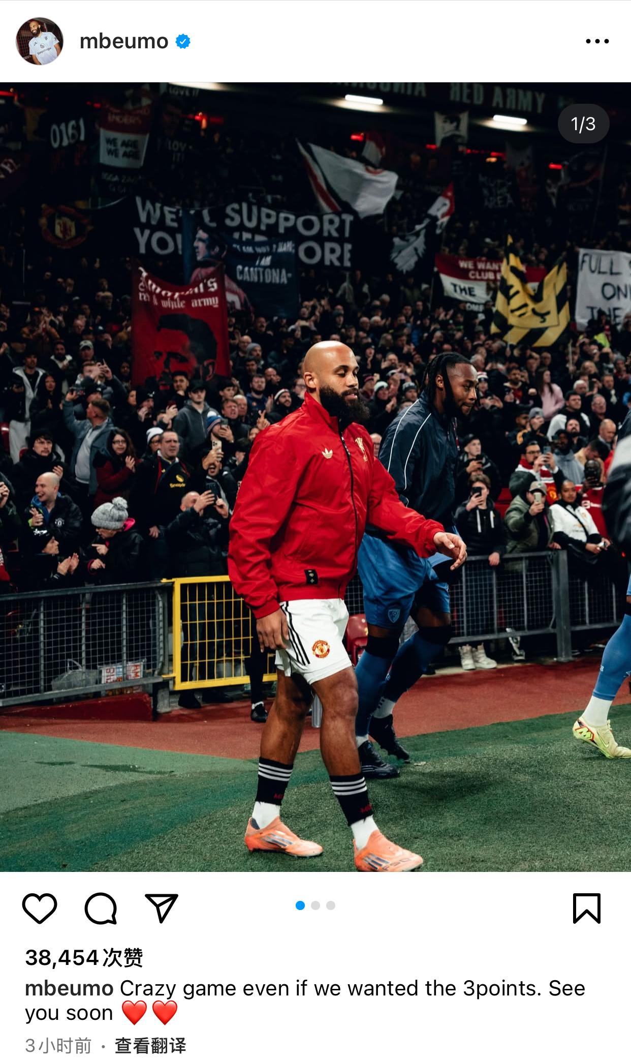 姆伯莫更新了Instagram:瘋狂的板姆伯莫比賽比賽,盡管我們希望獲得3分,盡管回頭見(jiàn)。望獲