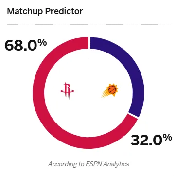 [流言板]ESPN預測明日比賽:火箭勝率為68%,太陽(yáng)勝率32%