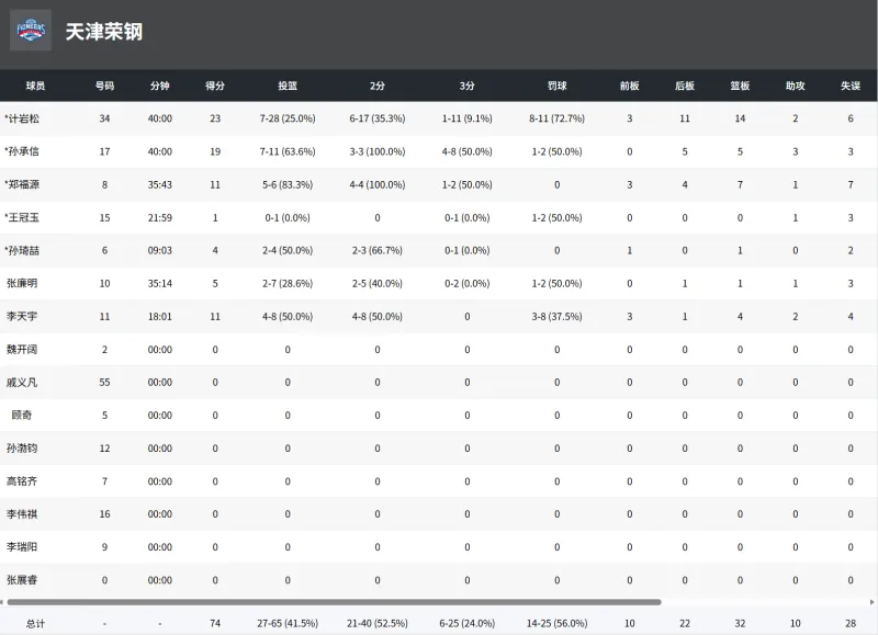 天津U19男籃:計巖松23分、男籃孫承信19分、全國李天宇11分