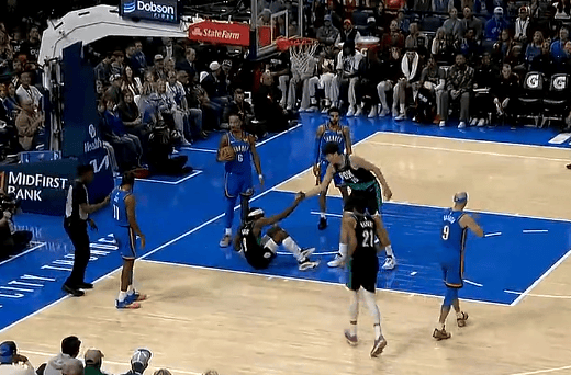 虎撲11月24日訊 NBA常規賽,開(kāi)拓者對陣雷霆的防被犯規比賽正在進(jìn)行中。