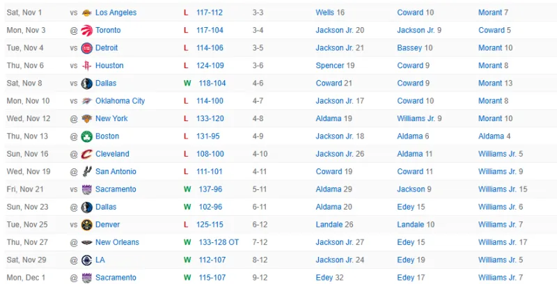 [流言板]灰熊11月前10場(chǎng)僅1勝9負,近6場(chǎng)拿到5勝1負并且取得3連勝