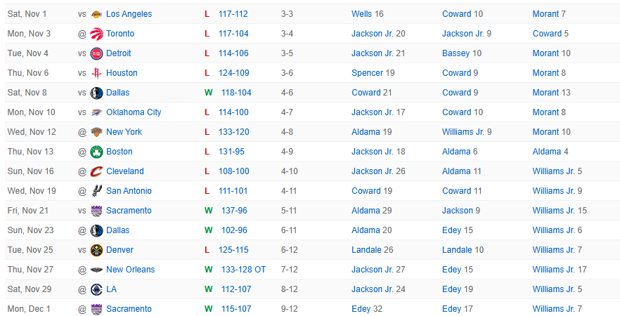 [流言板]灰熊11月前10場(chǎng)僅1勝9負,板灰近6場(chǎng)拿到5勝1負并且取得3連勝由虎撲籃球資訊 發(fā)表在籃球資訊 https://bbs.hupu.com/502