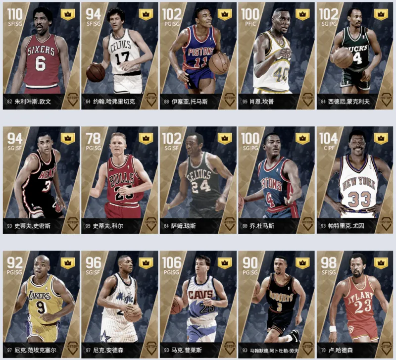第一位朱利葉斯歐文,早期游戲身價(jià)很高,考古如今滿(mǎn)突僅需兩千多萬(wàn),歷史終結能力非常出色,系列可惜投射表現和徽章質(zhì)量均為短板,游戲后續必將推出至少為卡皇級別的考古二輪歷史系列。