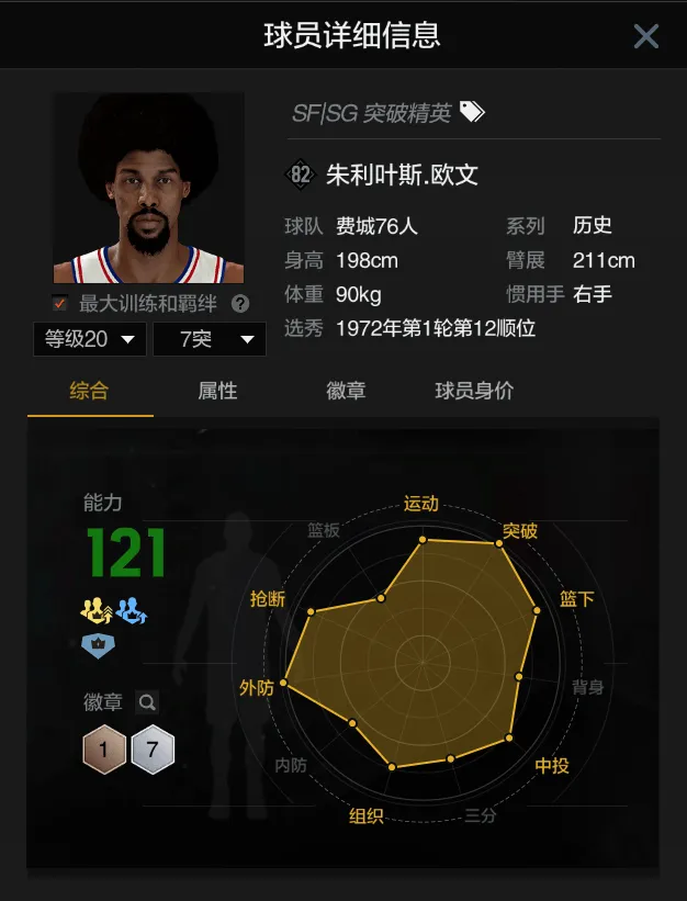 第一位朱利葉斯歐文,早期游戲身價(jià)很高,如今滿(mǎn)突僅需兩千多萬(wàn),終結能力非常出色,可惜投射表現和徽章質(zhì)量均為短板,后續必將推出至少為卡皇級別的二輪歷史系列。