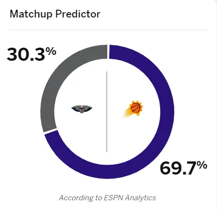 [流言板]ESPN預測明日太陽(yáng)vs鵜鶘比賽:太陽(yáng)勝率69.7%占據上風(fēng)由虎撲籃球資訊 發(fā)表在籃球資訊 https://bbs.hupu.com/502