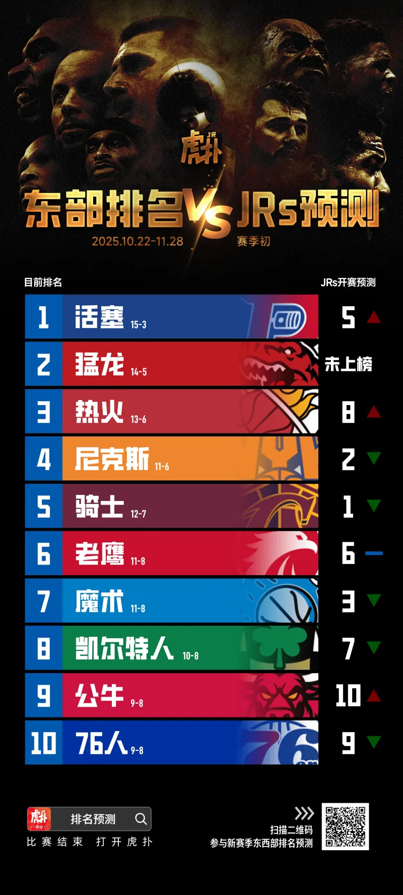 (上圖為當前東部排名vsJRs賽季前預測東部排名的對比)
