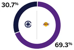 賽前,戰勝美媒ESPN預測本場(chǎng)比賽,人高湖人勝率為69.3%,快船快船勝率為30.7%。