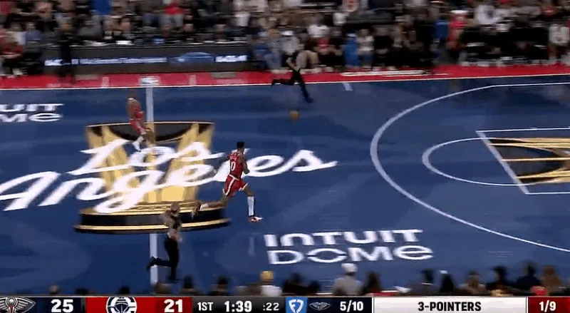 NBA杯小組賽,快船對陣鵜鶘的擊快比賽正在進(jìn)行中。