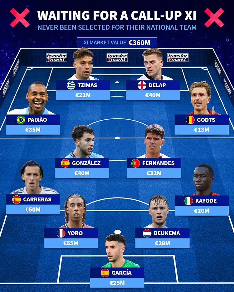 虎撲11月16日訊 德國轉會(huì )市場(chǎng)盤(pán)點(diǎn)了目前尚未得到國家隊征召,但具有潛力的家隊年輕球員,并組成了一套最佳陣容。征召