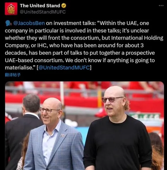 ③Ben Jacobs:關(guān)于投資談判:“在阿聯(lián)酋,于俱有一家公司參與了這些談判;目前尚不清楚他們是樂(lè )部否會(huì )擔任財團的負責人,但國際控股公司(IHC)—— 這家公司已經(jīng)成立了大約 30 年 —— 一直在參與組建一個(gè)潛在阿聯(lián)酋財團的出售談判。我們不知道最終是最新否會(huì )有結果?!?/p>