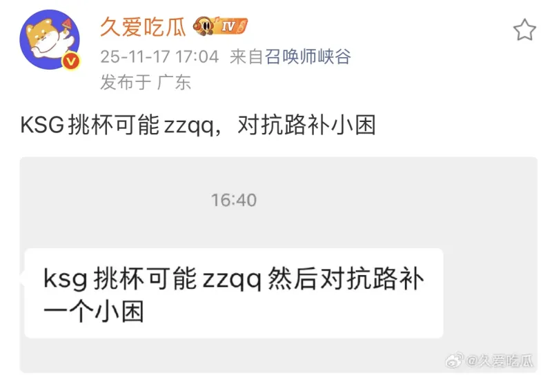 瓜主爆料:KSG挑杯整整齊齊,對抗路補小困