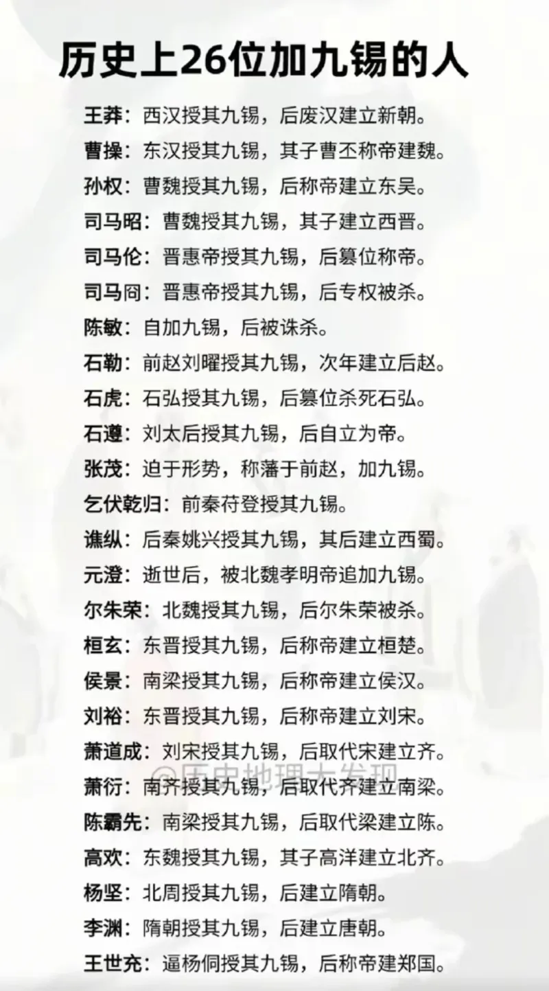 歷史上加九錫的加錫人,不是歷史當上了皇帝,就是上位被殺。