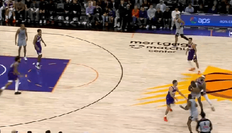 虎撲11月24日訊 NBA常規賽,太陽(yáng)主場(chǎng)迎戰馬刺的快攻比賽正在進(jìn)行中。