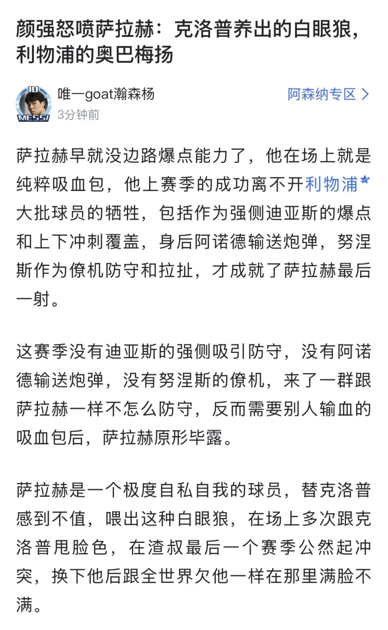 顏強逆天言論:薩拉赫參加非洲杯有利于斯洛特棄用薩拉赫由唯一山羊詹姆斯 發(fā)表在利物浦專(zhuān)區 https://bbs.hupu.com/liverpool