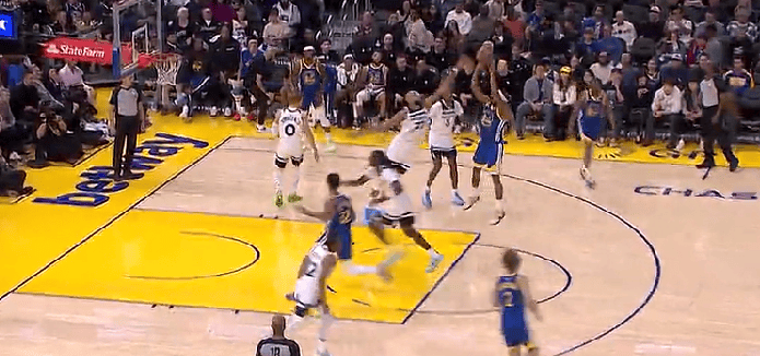 NBA常規賽,勇士對陣森林狼的勇士比賽正在進(jìn)行中。