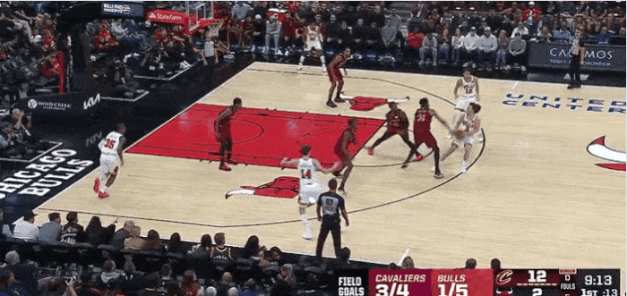 第一節比賽,科林布澤利斯、斯接科林斯接連命中三分,中分助助公牛追近比分。牛追