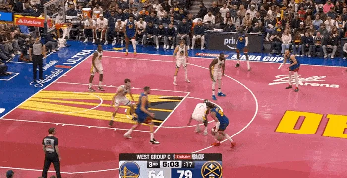 NBA杯小組賽,掘金對陣勇士的運球比賽正在進(jìn)行中。