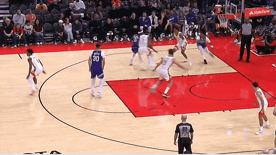 比賽第三節,投進(jìn)特再貝利先迎著(zhù)阿門(mén)投進(jìn)三分,分后后搶斷杜蘭特再中三分。搶斷