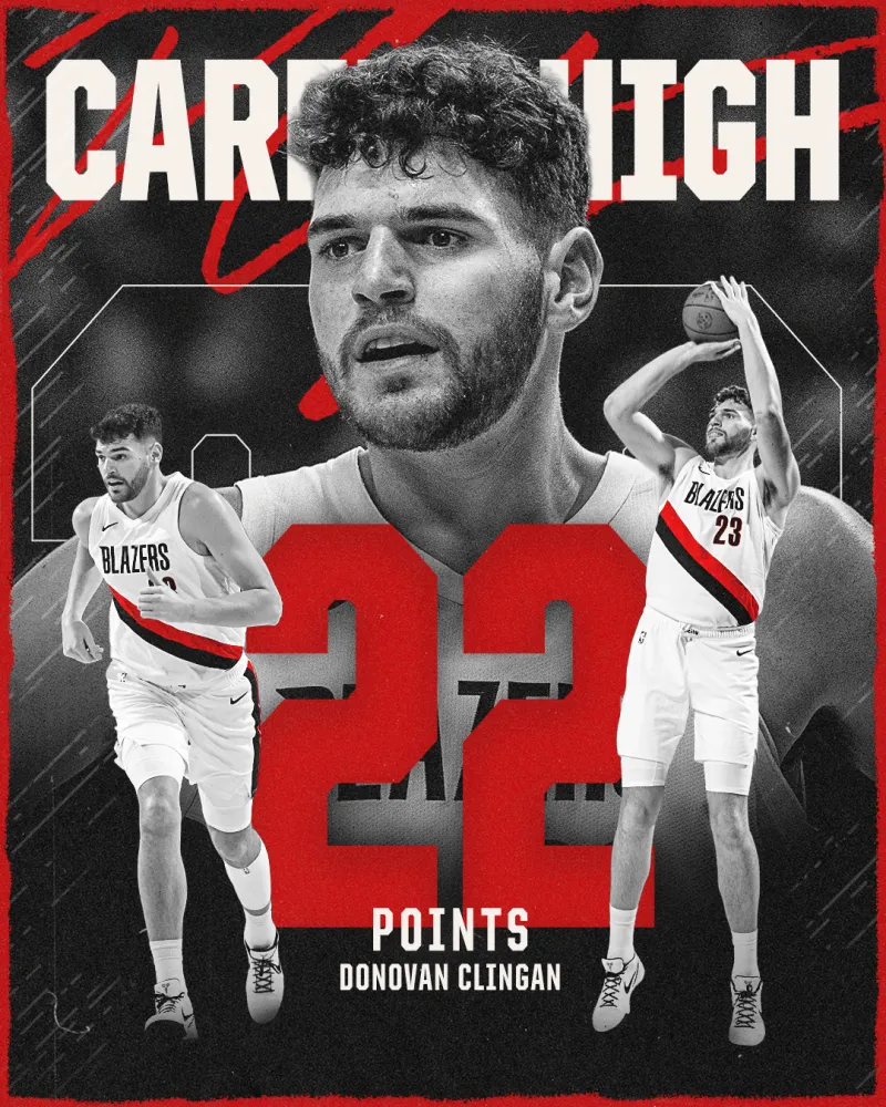 開(kāi)拓者官方分享海報:克林根今晚打出生涯之夜,新高砍下生涯新高22分。流言林根