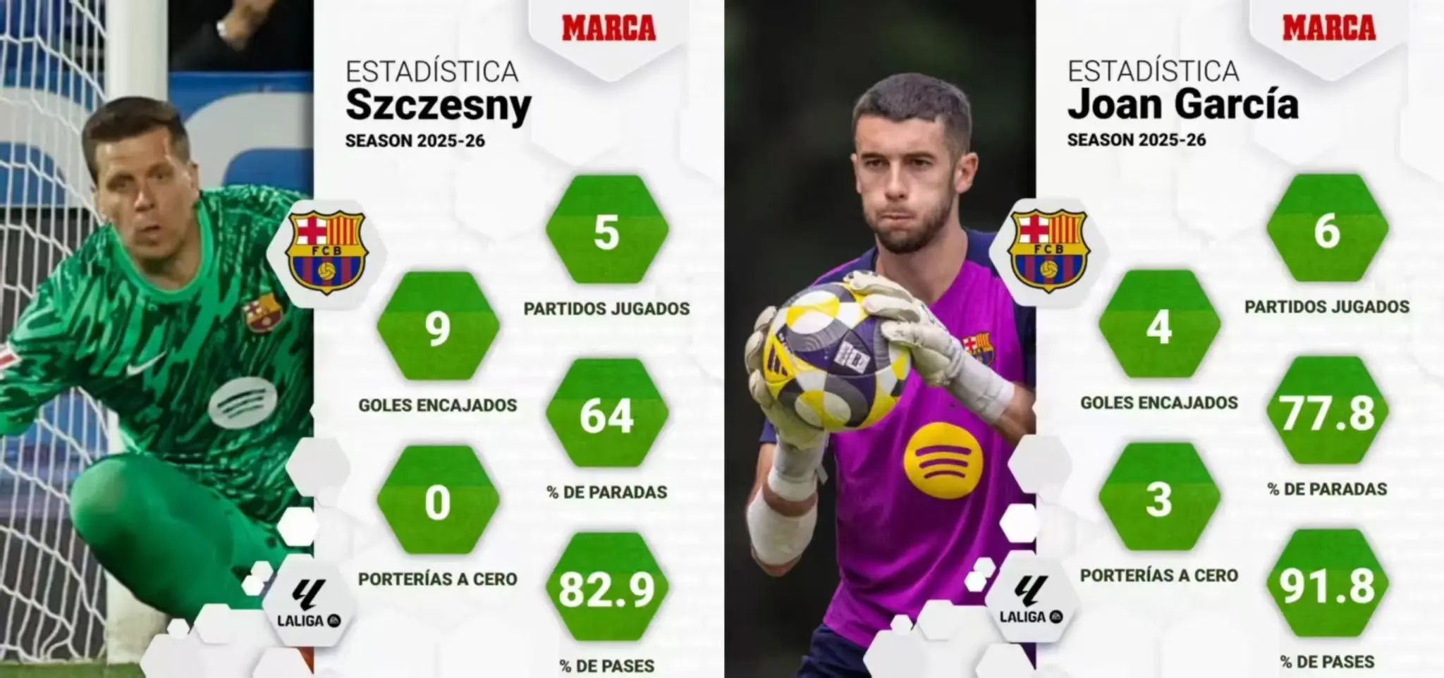 喬安-加西亞的失球數更少,撲救成功率更高,傳球準確率也更高……而且最重要的是,有一個(gè)非常關(guān)鍵的數據:零封場(chǎng)次。什琴斯尼至今還未取得零封,而加西亞在他出戰的七場(chǎng)比賽中有三場(chǎng)零封,最終這直接轉化為了積分。正如德容在對陣布魯日賽后所說(shuō):"如果你丟三個(gè)球,想贏(yíng)球就非常困難了。"