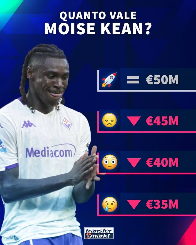虎撲12月12日訊 12月23日德轉即將更新意甲球員身價(jià),德轉官方為莫伊塞-基恩最新身價(jià)預熱,熱莫最高5000萬(wàn)歐,伊塞最低為3500萬(wàn)歐。板德