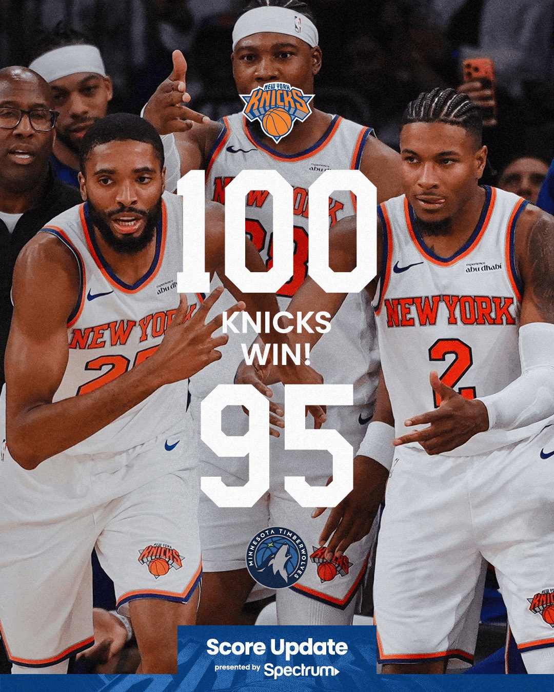 虎撲10月10日訊 今日NBA季前賽,尼克斯主場(chǎng)100-95戰勝森林狼。官方