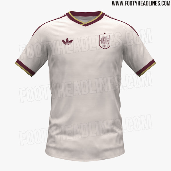 這款阿迪達斯設計的配高西班牙2026年世界杯客場(chǎng)球衣以 米白色為主色調,搭配酒紅與金色,貴典光整體風(fēng)格高雅而經(jīng)典。雅阿衣曝衣領(lǐng)與袖口均采用酒紅底色,迪設并飾以金色線(xiàn)條點(diǎn)綴。世界